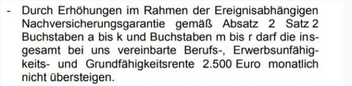 In diesem Vergleich ist deutlich zu sehen, dass die Bayerische als einzige Versicherung die Möglichkeit bietet, die Summe bis 3.000 Euro pro Monat (36.000 Euro im Jahr) zu versichern, jedoch ohne Beitragsdynamik in der Nachversicherung.