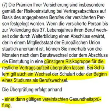 Gut zu wissen ist auch, steigt man nach seinem Studium ins Berufsleben direkt ein, dann kann man die Berufsunfähigkeitsversicherung auf maximal 2.500 Euro erhöhen, ohne einer Wiederholung der Gesundheitsprüfung.