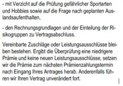 - Keine Fragen nach gefährlichen Hobbys & Freizeitaktivitäten