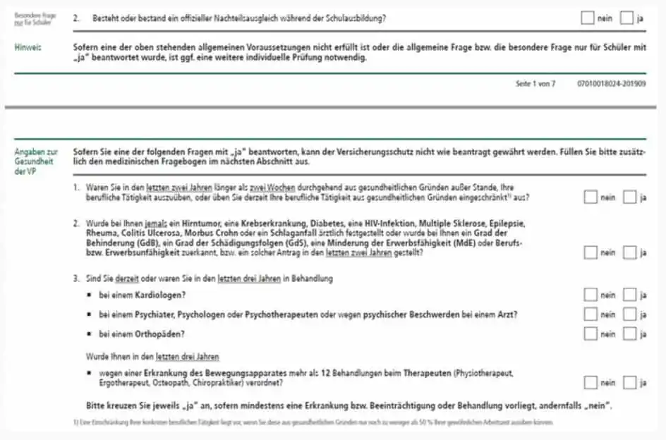 Die Gesundheitsfragen sind seit Juli 2019 aktuell und weisen keine Trickfragen oder sonstige verwirrende Fakten auf.