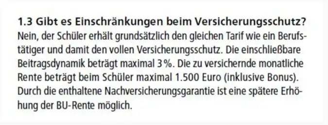 Welche Eckdaten sind bei der Schüler BU der HDI wichtig?