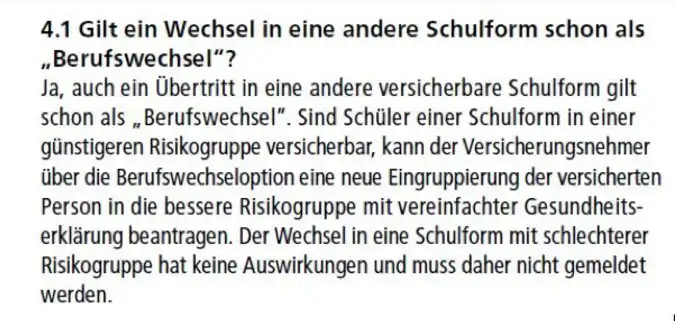 - Besserstellung auch möglich, jedoch mit erneuter Prüfung der Gesundheitsfragen