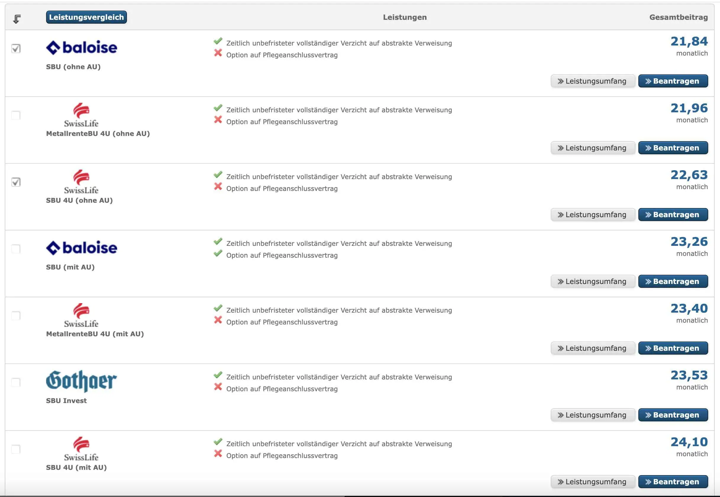 Hier die Anbieter in der Ăśbersicht, sortiert nach dem mtl. Beitrag: