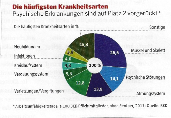 Das ZDF hat im Januar 2014 einen Beitrag in den Nachrichten gebracht, dass die psychischen Erkrankungen die häufigste Krankheitsursache sind. In der Mediathek können Sie diesen anschauen:
