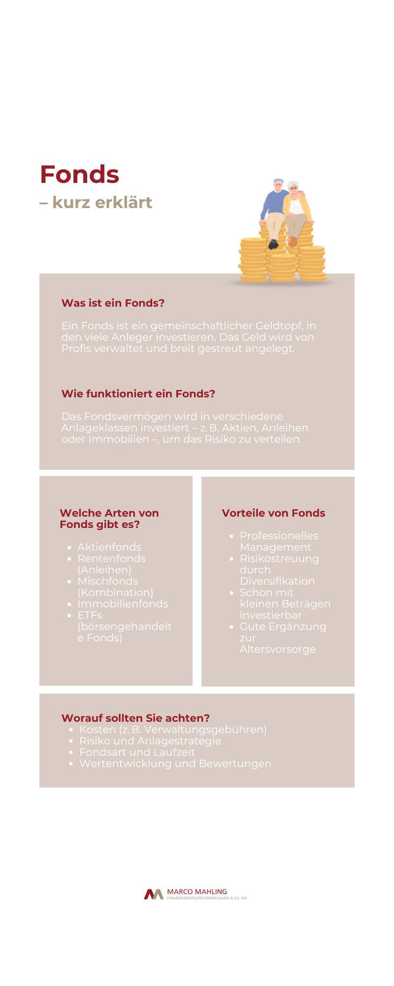 Durch die lange Vertragslaufzeit bleibt genügend Zeit, mögliche Marktschwankungen auszugleichen und von der langfristigen Wertentwicklung der Fonds zu profitieren. Je früher der Einstieg erfolgt, desto größer ist der finanzielle Spielraum.