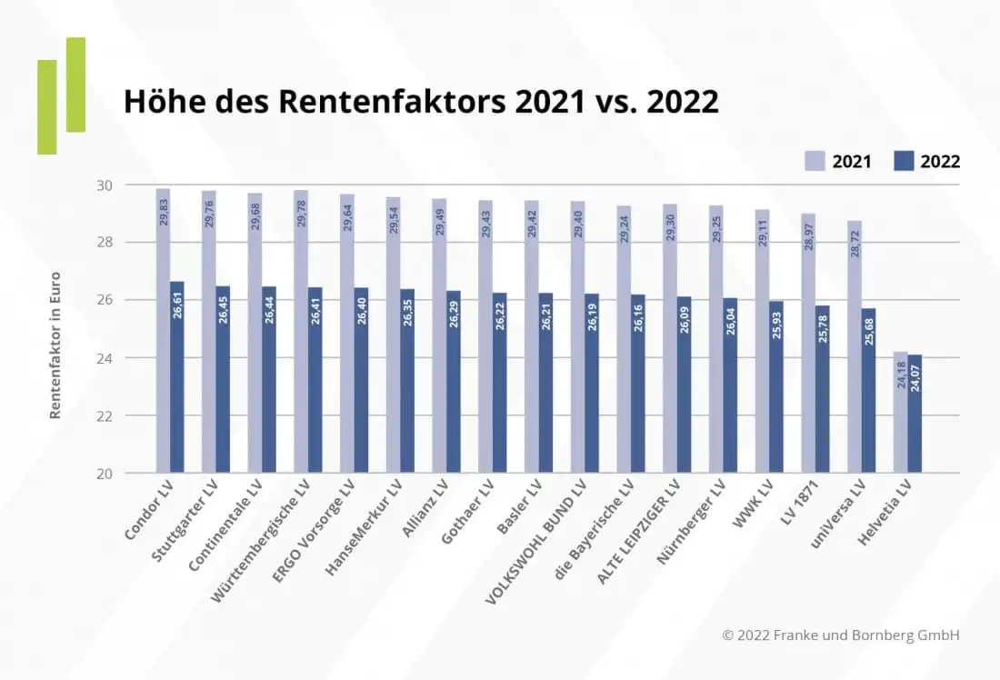 Marktüberblick über die Höhe aktueller Rentenfaktoren im Vergleich 2021 zu 2022: