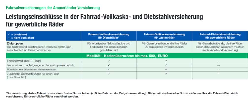 | Fahrrad-Unfallversicherung | optional | optional | ❌ | ✅ |