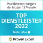 Auszeichnung zum Top Dienstleister 2023 über das Bewertungsportal „Ausgezeichnet.org“